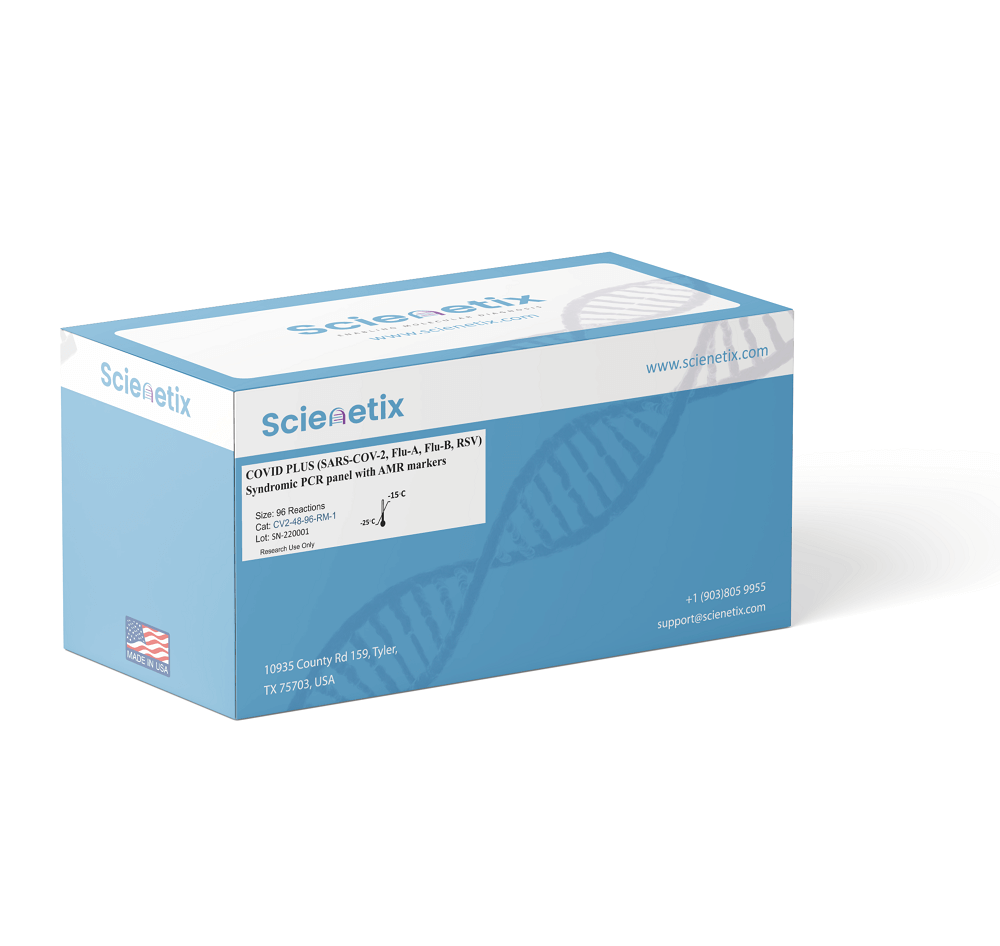 Covid flu and bacterial Infection (COPlus) multiplex PCR assays are intended for the qualitative detection of viral and bacterial pathogens. The Scienetix COPlus multiplex PCR reagent kit contains multiplex PCR assays for the detection of viral (4) and bacterial (2) respiratory pathogens and internal control. The Scienetix multiplex reaction mixes (CPRM-1 to CPRM-2) are configured as open system reagents (OSR) for use with any real-time PCR system. Fine-tuned multiplex reactions are available in 2ml tubes or pre-plated in 384 well plates.